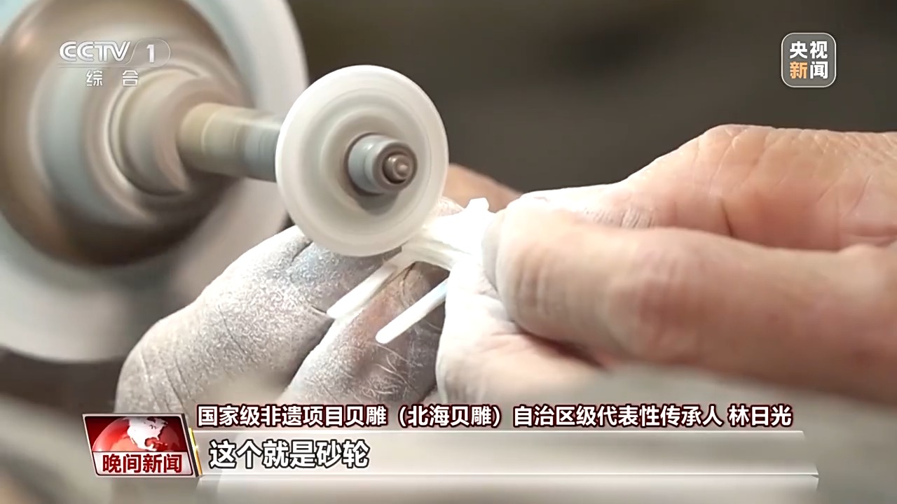 如切如磋,如琢如磨。廣西北海貝雕,以工藝精湛著稱(chēng),一件貝雕作品往往歷經(jīng)構(gòu)圖、白描、磨型、雕琢、拋光等多道工序。從藝五十年的林師傅說(shuō),制作貝雕,最重要的工具是砂輪。