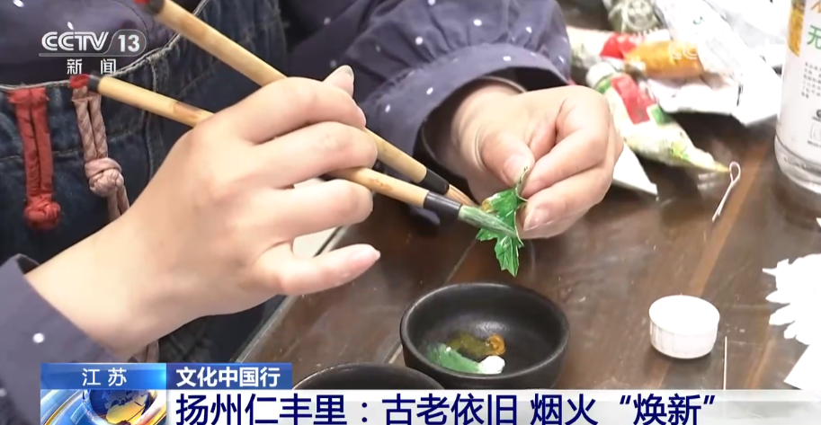 總臺央視記者 楊威:將傳統(tǒng)的非遺技能進行適合現(xiàn)代生活的活化式展現(xiàn),是仁豐里非遺呈現(xiàn)的一大特色。像作為江蘇省級非遺的揚州通草花制作技藝,已經(jīng)有了超過兩千年的歷史,以前只是專攻于宮廷,如今在這里您可以近距離地觀賞手藝人們現(xiàn)場制作的技巧,也可以親自上手做一個屬于自己的通草花帶回家。