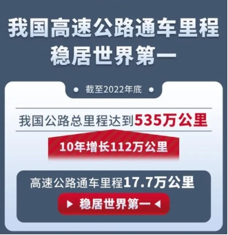 1999年,“黃金周”這個概念第一次出現(xiàn)在大眾視野里,在那一年,全國高速公路通車里程剛突破1萬公里。截至2022年底,我國公路總里程達到535萬公里,其中高速公路通車里程17.7萬公里,穩(wěn)居世界第一。