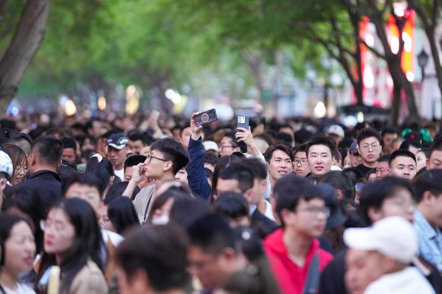 5月1日,哈爾濱中央大街上人頭攢動(dòng)。“五一”假期,文旅市場火熱。新華社記者 王建威 攝
