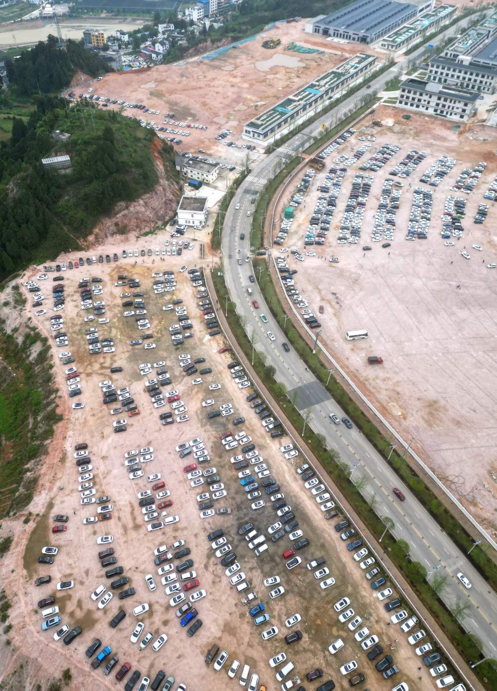 5月1日,游客車輛在貴州省黔東南苗族侗族自治州臺(tái)江縣臺(tái)盤村停車(無(wú)人機(jī)照片)。為了滿足外地游客觀看“村BA”的需求,當(dāng)?shù)乩瞄e置空地規(guī)劃設(shè)置免費(fèi)臨時(shí)停車場(chǎng),增加車位7000余個(gè),供游客免費(fèi)停車。新華社發(fā)(余天英 攝)