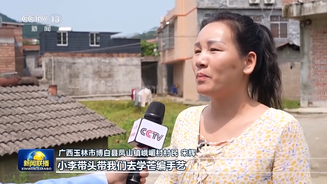 廣西玉林市博白縣鳳山鎮(zhèn)峨嵋村村民 宋輝:小李帶頭帶我們?nèi)W(xué)芒編手藝,幫我們找訂單,以前楊梅下了市,我們基本也沒(méi)什么能干的了,現(xiàn)在都有點(diǎn)忙不過(guò)來(lái)。