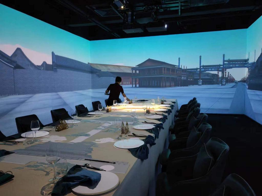 5月9日,前門大街全聚德起源店的光影主題餐廳,店員正在備餐。新華社記者 謝希瑤 攝