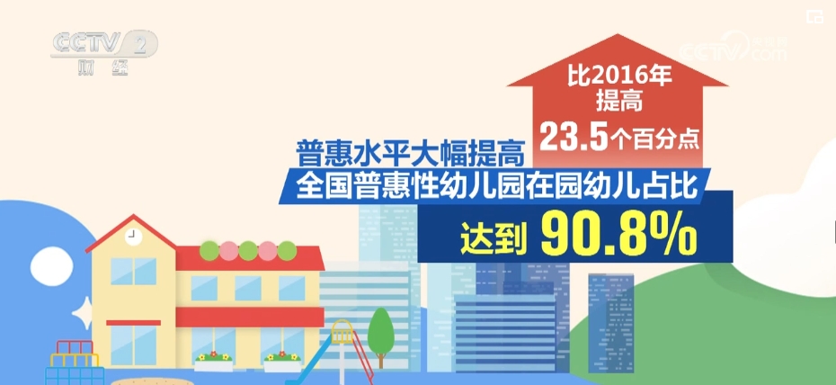 2011年—2023年,中央財政支持學(xué)前教育發(fā)展專項資金累計投入2210億元。普惠水平大幅提高,全國普惠性幼兒園在園幼兒占比達(dá)到90.8%,比2016年提高23.5個百分點,絕大多數(shù)幼兒都能在收費合理的普惠性幼兒園就讀。