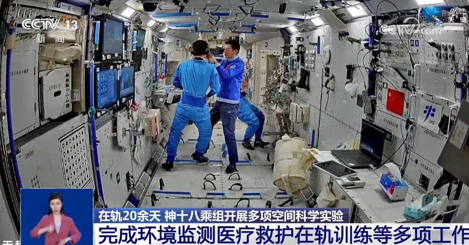 在按計劃開展科學(xué)實(試)驗及實驗裝置維護的同時,三名航天員還完成了空間站內(nèi)環(huán)境監(jiān)測、醫(yī)療救護在軌訓(xùn)練等多項工作。
