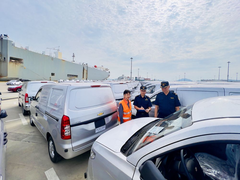 廣州海關(guān)所屬南沙海關(guān)關(guān)員對出口汽車進行監(jiān)管。(受訪者供圖)