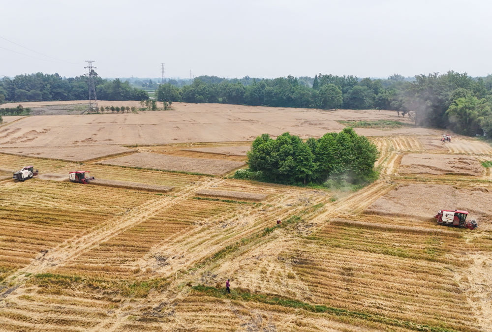 從五月初到六月初,除了傳統(tǒng)意義上的搶收小麥和搶種水稻的“雙搶”,舒星宇還要忙著統(tǒng)籌安排拖拉機翻耕,組織無人機飛手打藥,夜里在庫房安排收回來的小麥烘干,還要將最后一批次育好的秧苗及時送到種糧大戶手中……
