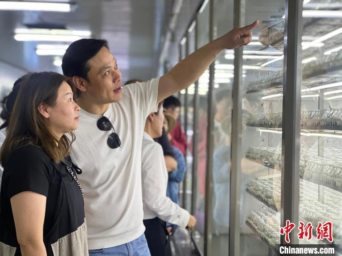 5月23日,臺(tái)青答允煦(左)和妻子徐晶晶一起參觀參觀九仙尊石斛文博園。儲(chǔ)瑋瑋 攝