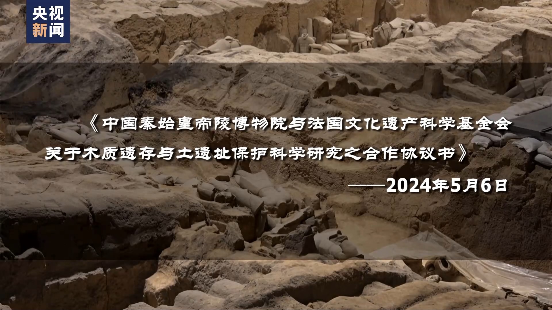 2024年5月6日,中法簽訂了《中國秦始皇帝陵博物院與法國文化遺產(chǎn)科學(xué)基金會關(guān)于木質(zhì)遺存與土遺址保護(hù)科學(xué)研究之合作協(xié)議書》。