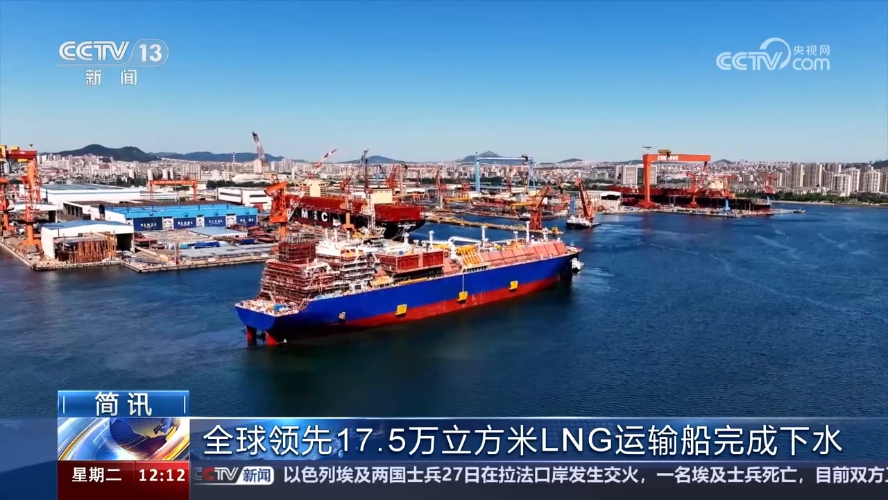 5月27日,由中國船舶大連造船研發(fā)建造的LNG液化天然氣運輸船完成下水,運輸船總長295米,貨艙總艙容17.5萬立方米,可以停靠全球絕大多數(shù)大型LNG岸站。接下來,運輸船將陸續(xù)完成水下系泊調試、貨艙貨物圍護系統(tǒng)施工,預計2025年8月中旬交付。