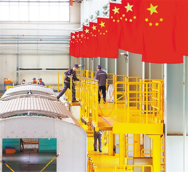 ▲5月28日,中車(chē)長(zhǎng)客國(guó)鐵事業(yè)部制造中心裝配產(chǎn)線組,員工在忙生產(chǎn)。