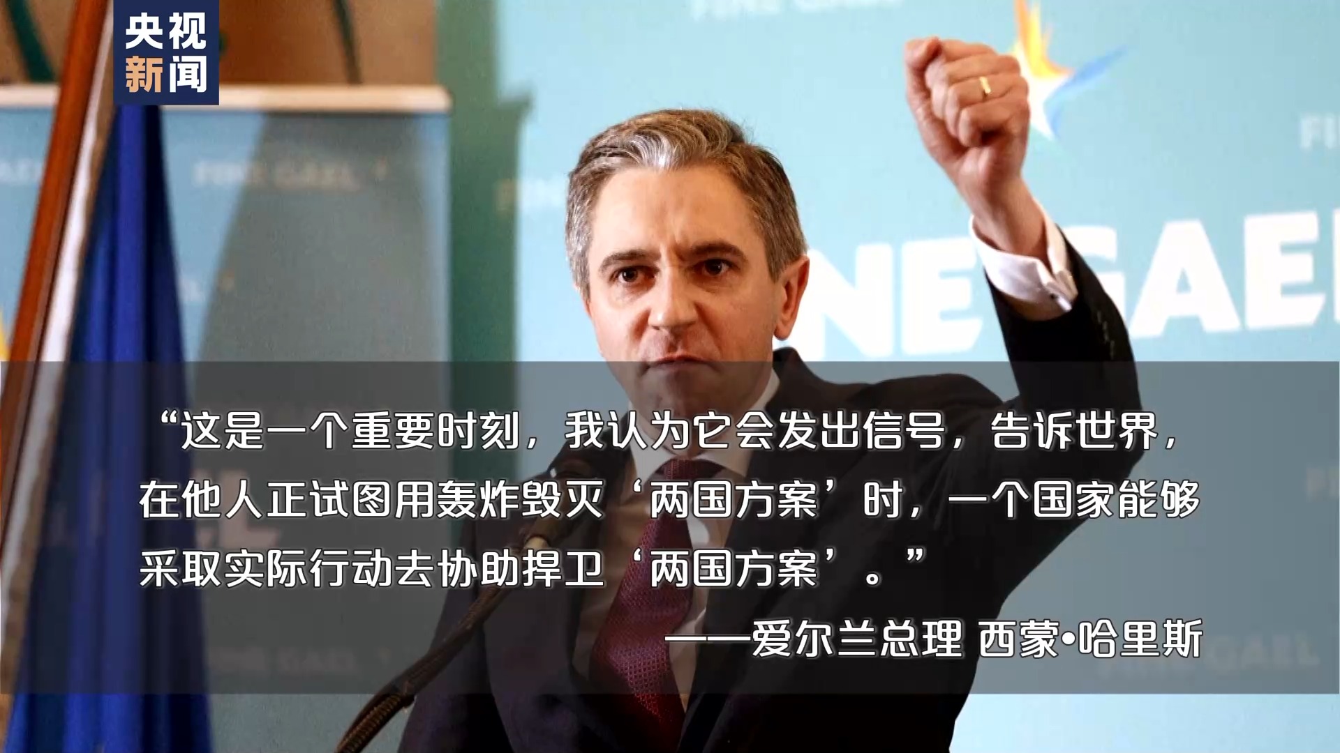 “這是一個(gè)重要時(shí)刻,我認(rèn)為它會(huì)發(fā)出信號(hào),告訴世界,在他人正試圖用轟炸毀滅‘兩國(guó)方案’時(shí),一個(gè)國(guó)家能夠采取實(shí)際行動(dòng)去協(xié)助捍衛(wèi)‘兩國(guó)方案’?!薄獝?ài)爾蘭總理 西蒙·哈里斯