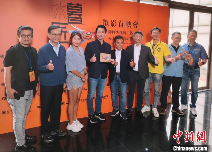 講述知名龍舟匠師劉清正故事的紀錄片《暮匠》首映會近日在臺北舉行。圖為臺北市市長蔣萬安(左四)、導(dǎo)演林佳儒(左三)、出品方旭源營造工程公司董事長朱東輝(右五)出席活動。中新社記者 劉舒凌 攝