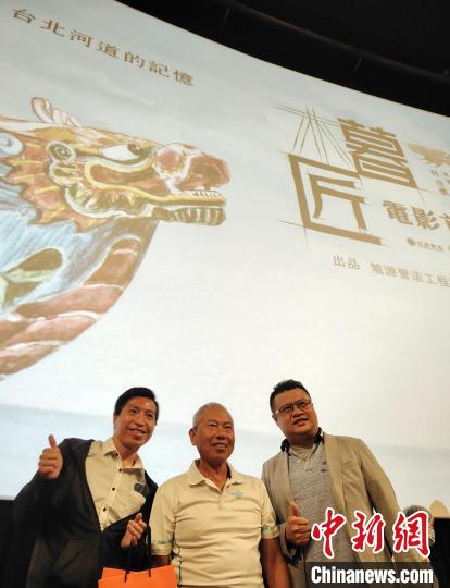 講述知名龍舟匠師劉清正故事的紀錄片《暮匠》首映會近日在臺北舉行。圖為83歲的劉清正(中)與觀影者合影。中新社記者 劉舒凌 攝