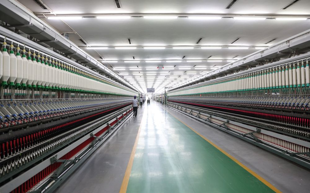 圖為無錫一棉紡織集團有限公司的特高支緊密紡智能制造車間。新華社記者 楊磊 攝