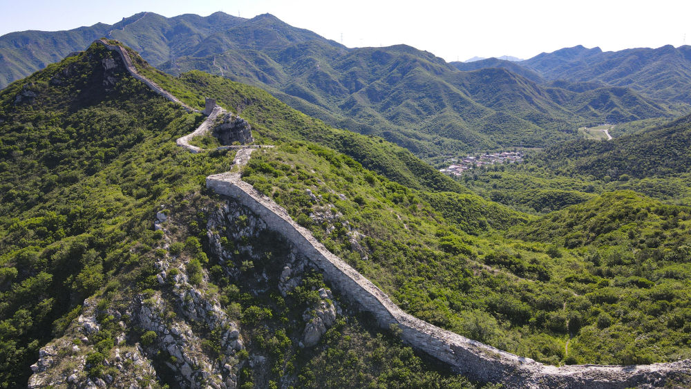石峽關(guān)長城和長城腳下的石峽村(2024年6月1日攝,無人機照片)。新華社記者 陳鐘昊 攝