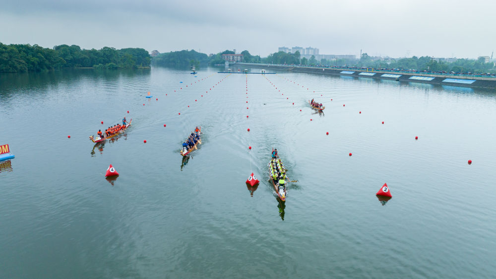 圖為6月10日端午節(jié)在重慶舉行的“大足石刻杯”成渝雙城經(jīng)濟圈龍舟邀請賽決賽現(xiàn)場。(瞿波 攝)