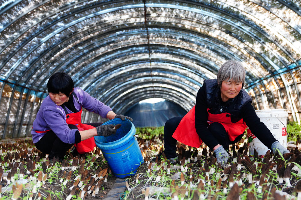 2024年3月20日,農(nóng)民在山東省濟(jì)寧市微山縣驩城鎮(zhèn)袁堂華能光伏電站農(nóng)光互補項目的大棚里采摘羊肚菌。該項目是采煤塌陷區(qū)綜合整治項目,集農(nóng)光互補、漁光互補于一體。新華社記者 郭緒雷 攝