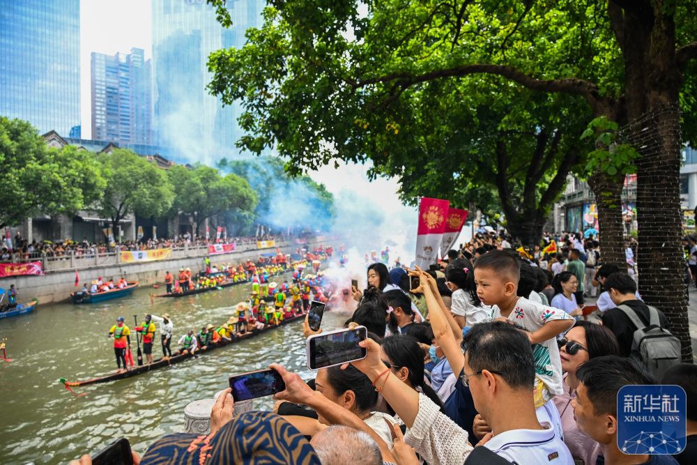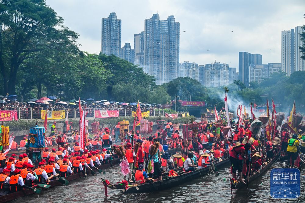 6月10日,國(guó)內(nèi)外游客匯聚在獵德觀賞“龍船景”。“龍船景”是廣府地區(qū)水鄉(xiāng)在端午期間舉辦的一種民俗活動(dòng)。