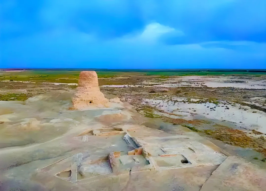 莫爾寺遺址發(fā)掘現(xiàn)場(chǎng):遠(yuǎn)處為圓形塔,近處為大佛殿和僧舍建筑基址。