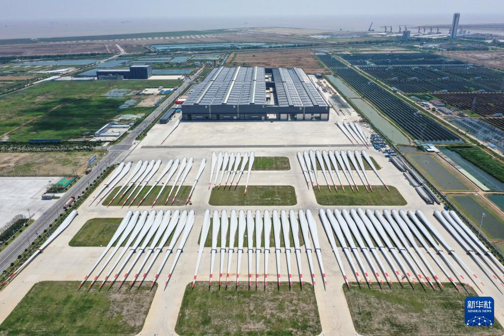 6月6日拍攝的位于射陽港低(零)碳產業(yè)園的射陽中車風電葉片工程有限公司的外景照片(無人機照片)。 新華社記者 楊磊 攝