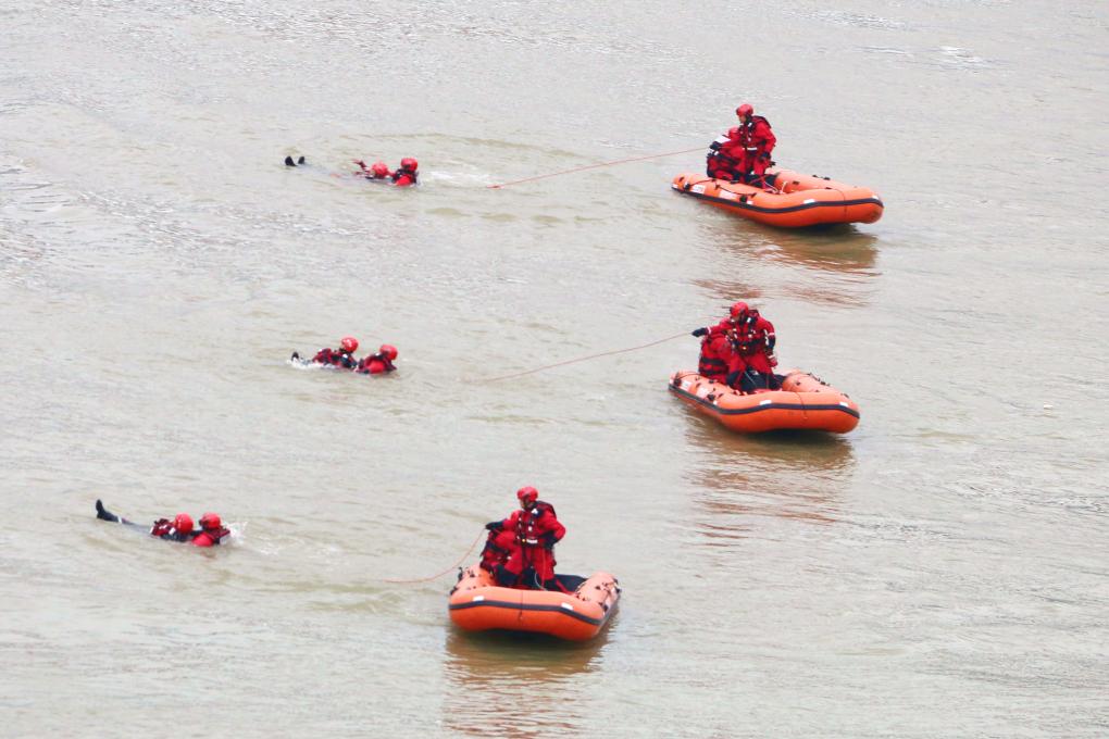 6月11日,梧州市消防救援支隊水域救援專業(yè)隊在廣西桂江流域進行救援訓練。(雷開偉 攝)