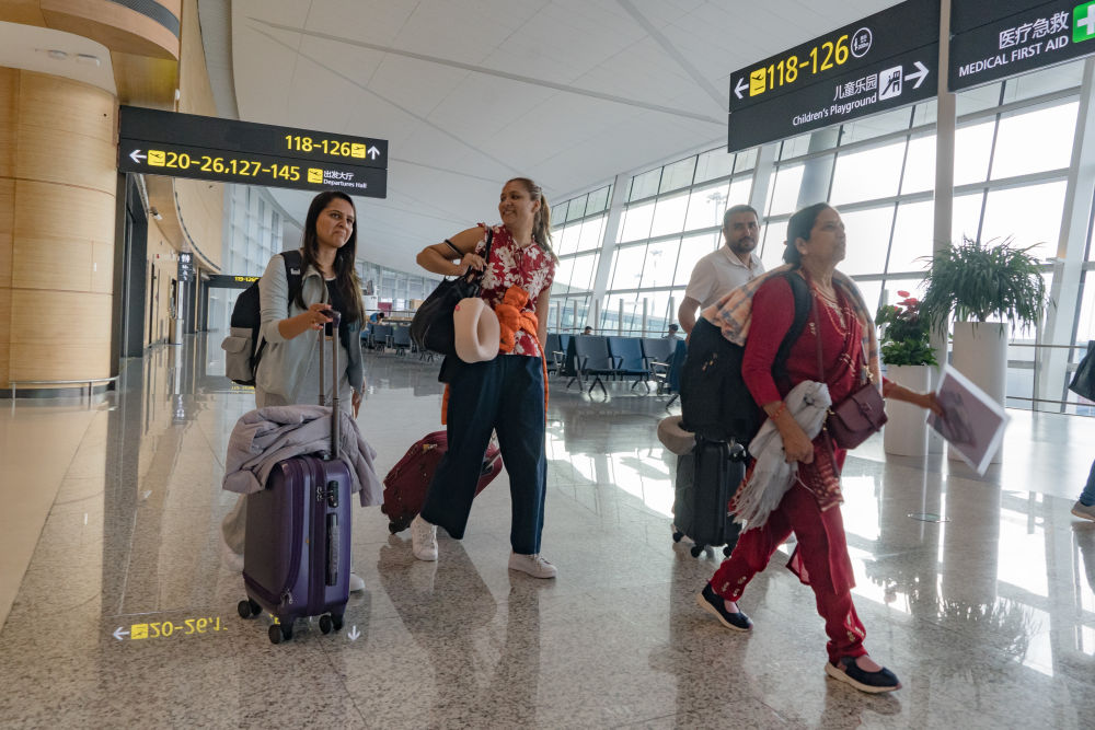 2024年6月13日,旅客行走在成都天府國(guó)際機(jī)場(chǎng)T1航站樓內(nèi)。新華社記者 唐文豪 攝