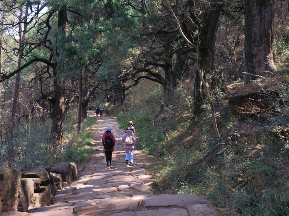 2024年3月9日,游客在位于四川省廣元市劍閣縣的金牛道行走。新華社記者 唐文豪 攝