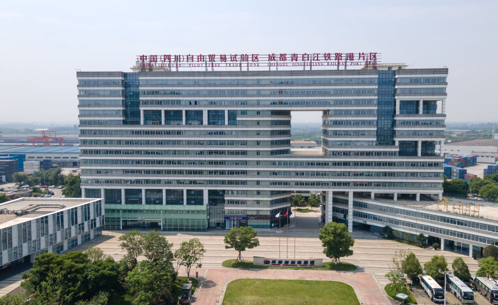 這是2024年6月13日拍攝的中國(guó)(四川)自由貿(mào)易試驗(yàn)區(qū)成都青白江鐵路港片區(qū)(無(wú)人機(jī)照片)。新華社記者 唐文豪 攝