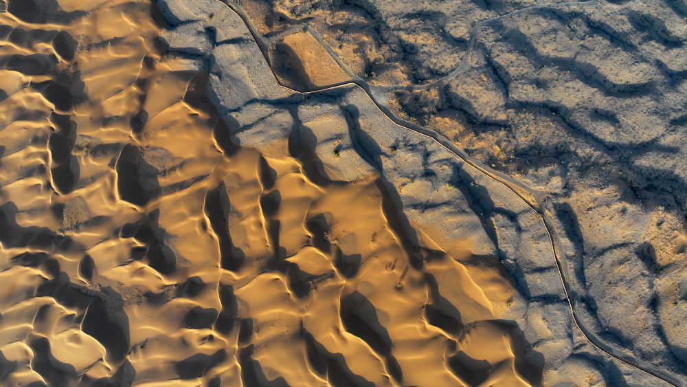 這片黃沙橫跨寧夏和內(nèi)蒙古兩地,屬于毛烏素沙地。不久前,這里剛剛打了一場省際聯(lián)手治沙的攻堅(jiān)戰(zhàn)。