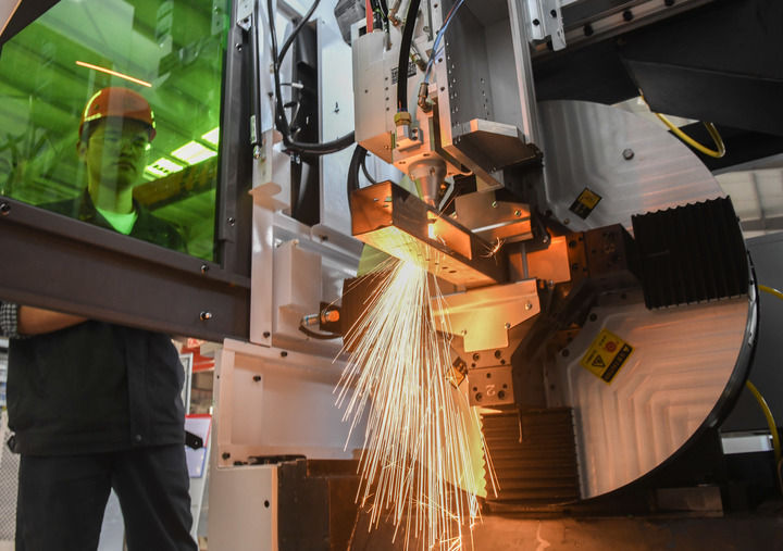 在位于湖北武漢“中國光谷”的華工科技產(chǎn)業(yè)股份有限公司連續(xù)取得關(guān)鍵核心技術(shù)突破,實現(xiàn)高性能三維五軸激光切割機完全國產(chǎn)化。(視頻截圖)