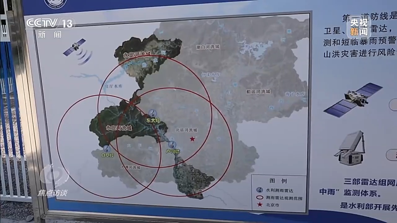 近年來(lái),水利部門(mén)一直在抓緊推動(dòng)雨水情監(jiān)測(cè)預(yù)報(bào)“三道防線(xiàn)”的建設(shè),第一道防線(xiàn)的基本構(gòu)成是氣象衛(wèi)星和測(cè)雨雷達(dá),第二道防線(xiàn)的基本構(gòu)成是雨量站,第三道防線(xiàn)的基本構(gòu)成是水文站。這“三道防線(xiàn)”通過(guò)“天空地”的立體監(jiān)測(cè)手段,對(duì)流域內(nèi)雨水情進(jìn)行實(shí)時(shí)監(jiān)測(cè)和預(yù)報(bào)預(yù)警,以便及時(shí)采取措施應(yīng)對(duì)可能出現(xiàn)的洪澇災(zāi)害。三座聯(lián)網(wǎng)的測(cè)雨雷達(dá)就是北京市官?gòu)d山峽區(qū)域,也就是永定河流域洪水預(yù)測(cè)預(yù)報(bào)“第一道防線(xiàn)”的重要組成部分。