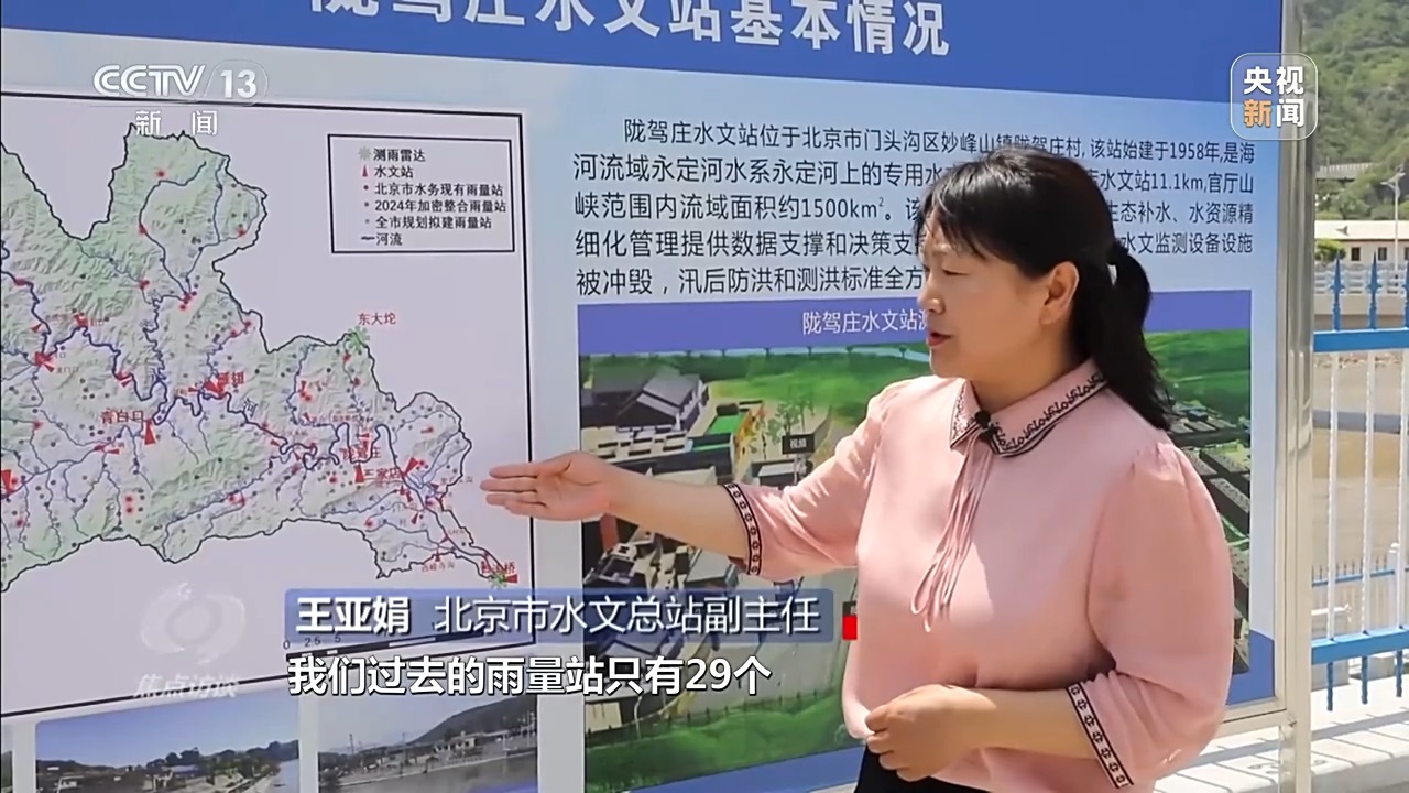 北京市水文總站副主任 王亞娟:過(guò)去雨量站只有29個(gè),現(xiàn)在整個(gè)官?gòu)d山峽的雨量站達(dá)到256個(gè),還進(jìn)一步規(guī)劃,一共是384個(gè),以后的官?gòu)d山峽的站網(wǎng)密度能夠達(dá)到2.5平方公里每站,這樣的話(huà),就能提前做好準(zhǔn)備,為它的下游提供數(shù)據(jù)支持、決策支持。