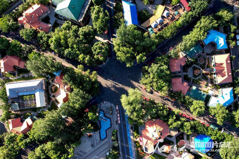 綠樹(shù)環(huán)抱的伊寧市六星街。孫藝男攝