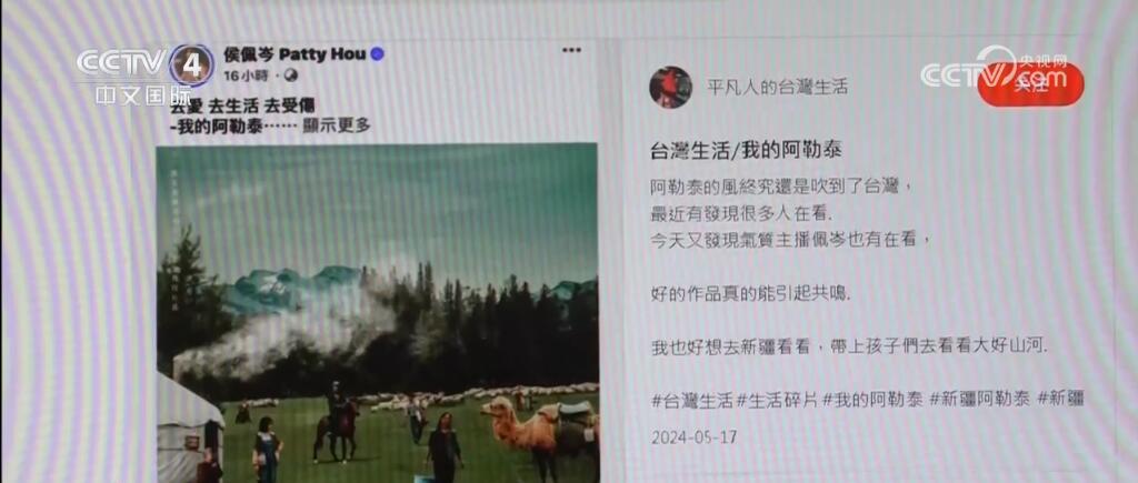 從廣袤無垠的戈壁沙漠到壯麗的天山山脈,再到碧綠的喀納斯湖,新疆的雄偉壯觀的自然美景和豐富多樣的人文風情在臺灣經常通過各類旅游論壇、網紅游記的分享廣為傳播。而這段時間新疆旅游之所以在臺灣更加火爆,不得不提的就是這部在臺灣也引發(fā)很多關注的電視劇《我的阿勒泰》。在社交媒體上有臺灣劇迷分享追劇感想,也引來大陸網友熱情分享新疆的美景美食。