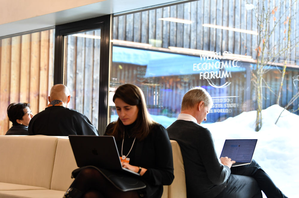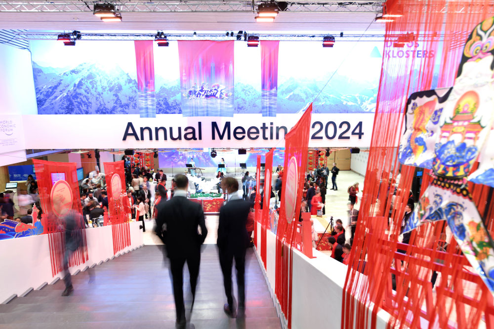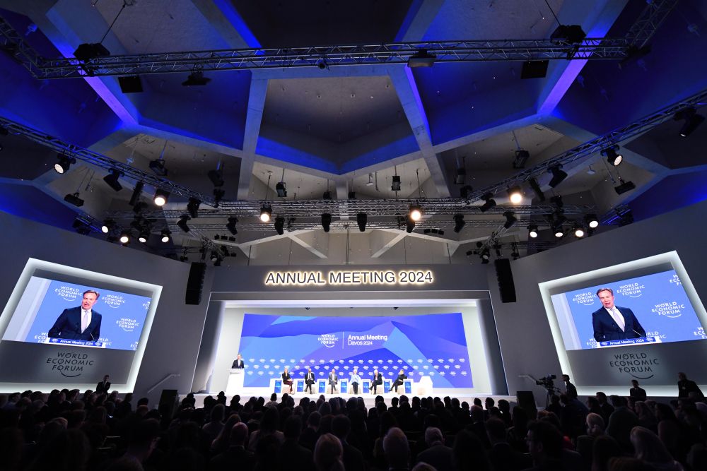 ↑在瑞士達(dá)沃斯舉行的世界經(jīng)濟(jì)論壇2024年年會(huì)現(xiàn)場(chǎng)。