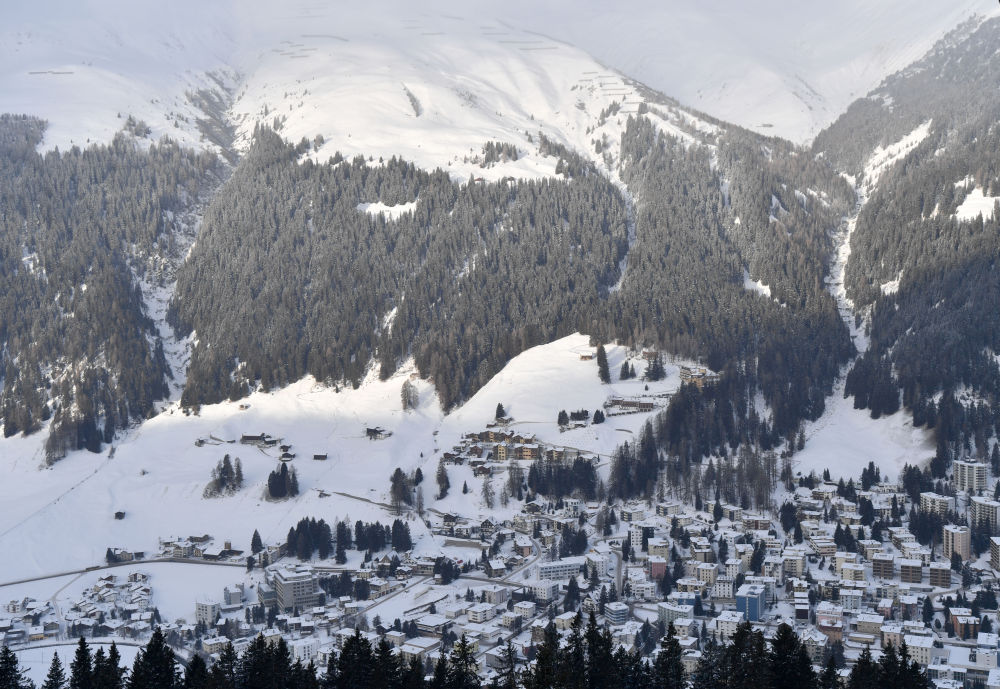↑雪中的瑞士小鎮(zhèn)達(dá)沃斯。