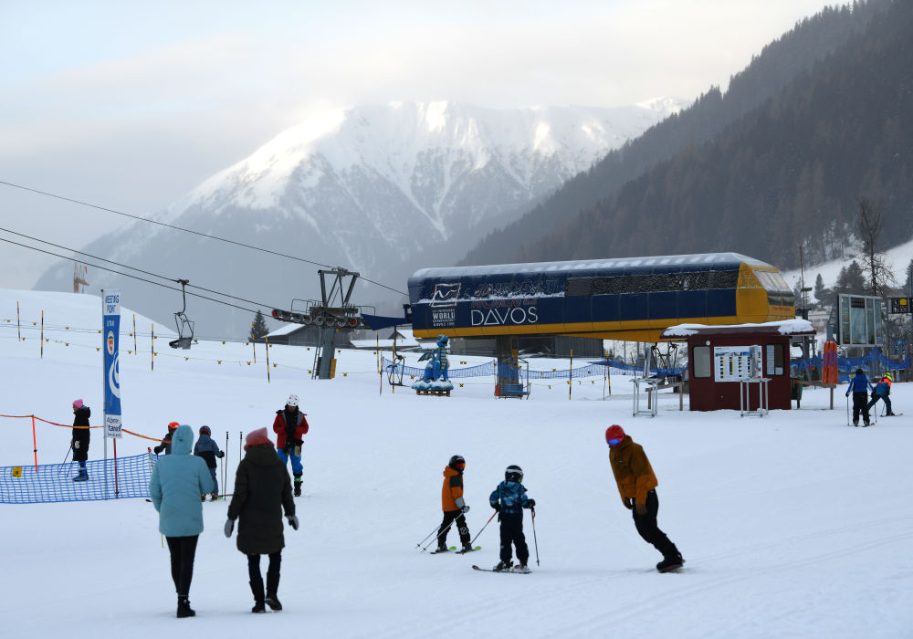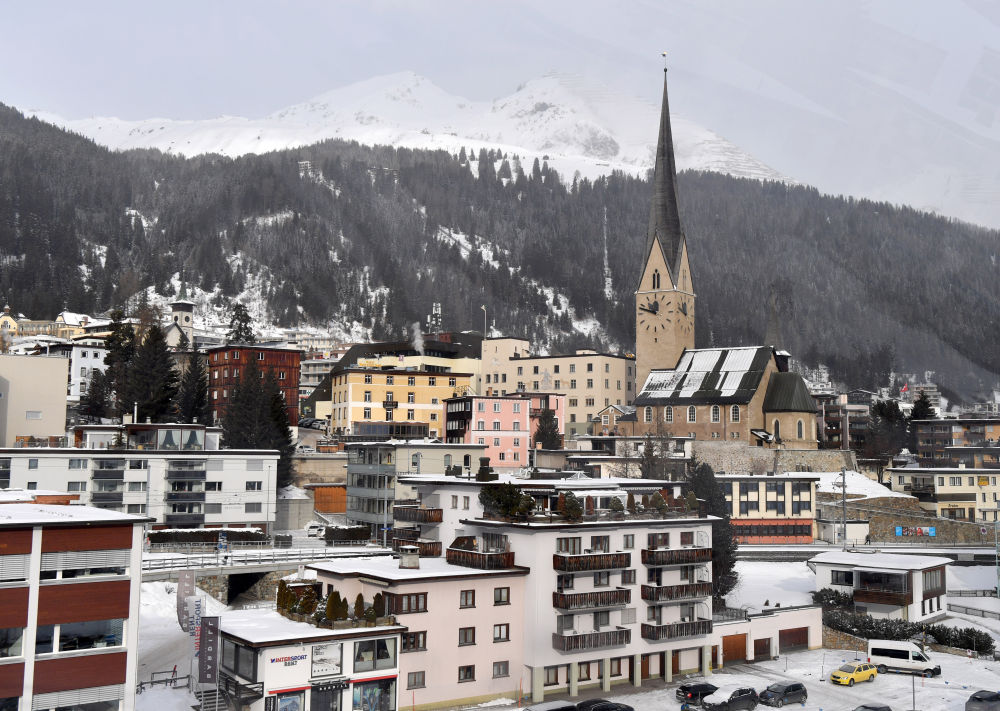 ↑在瑞士達(dá)沃斯拍攝的世界經(jīng)濟(jì)論壇標(biāo)識(shí)。