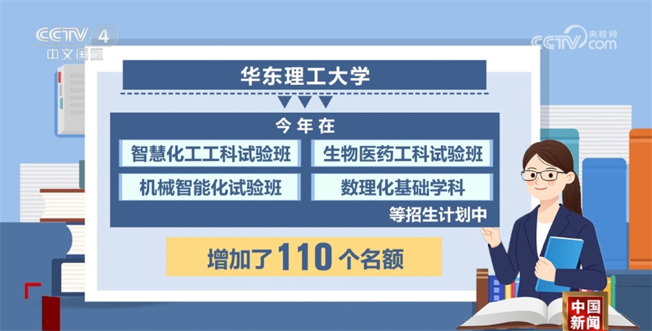華東理工大學(xué)本科生招生辦公室主任孫玉柱介紹:“增加招生計(jì)劃的專業(yè)主要集中在理工類專業(yè),主要是我校優(yōu)勢(shì)專業(yè)和熱門(mén)專業(yè),這也恰恰是國(guó)家對(duì)攻克關(guān)鍵技術(shù)領(lǐng)域“卡脖子”技術(shù)需求和對(duì)高端人才需求比較迫切的學(xué)科和領(lǐng)域,而且今后幾年,我校還將持續(xù)增加理工類招生專業(yè)的規(guī)模和比例。”