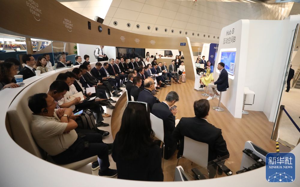 ↑ 這是6月25日拍攝的夏季達(dá)沃斯論壇開(kāi)幕式現(xiàn)場(chǎng)。