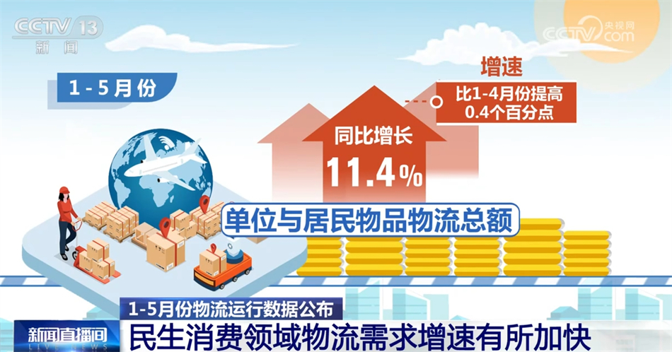 中國物流信息中心主任劉宇航表示,從1—5月我國社會(huì)物流運(yùn)行情況來看,總體還是保持穩(wěn)中向好。從消費(fèi)的情況來看,5月份以來整個(gè)消費(fèi)活力比較強(qiáng),消費(fèi)增速比較明顯。