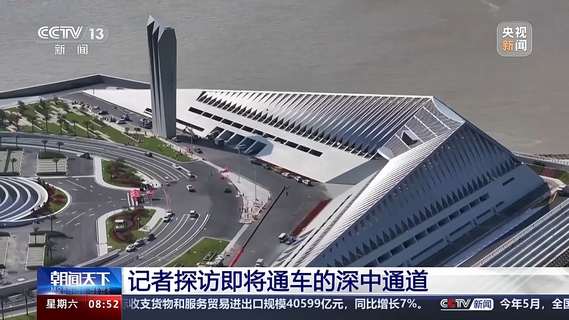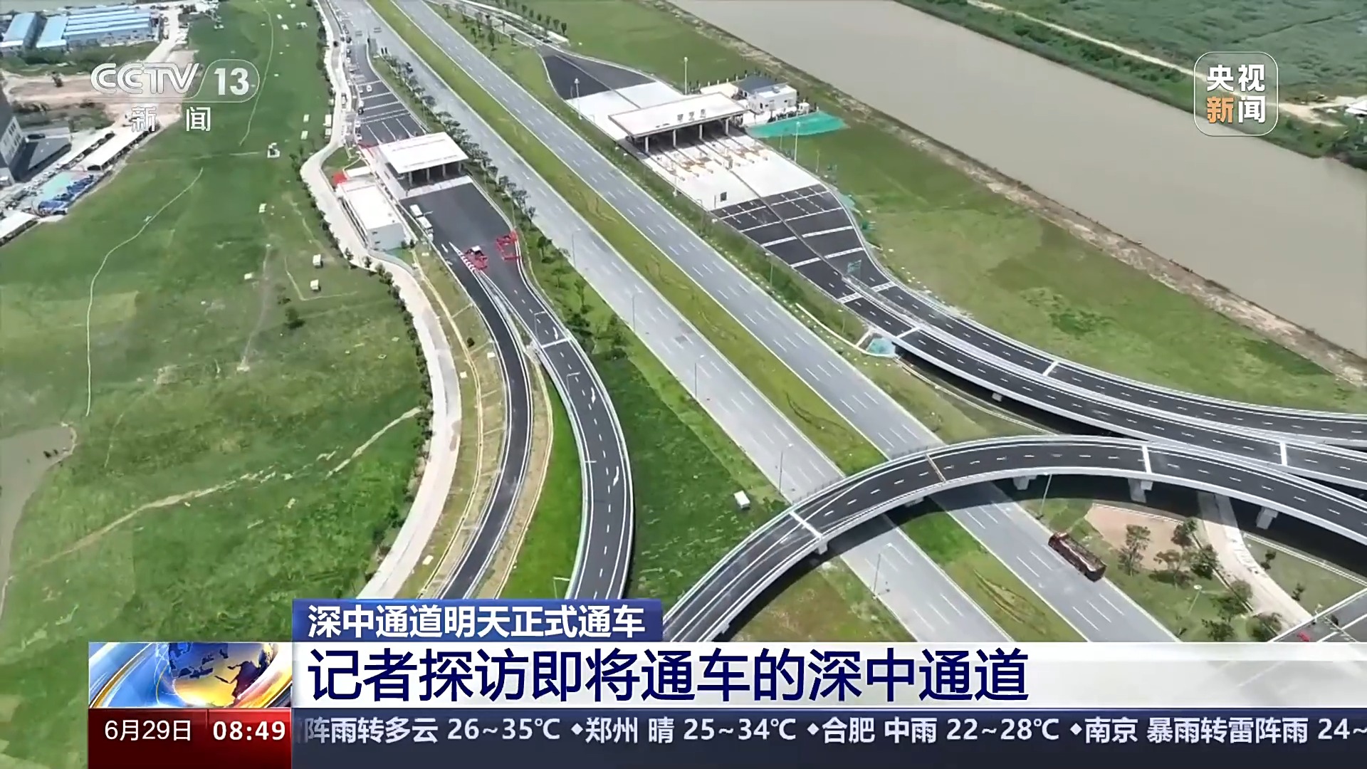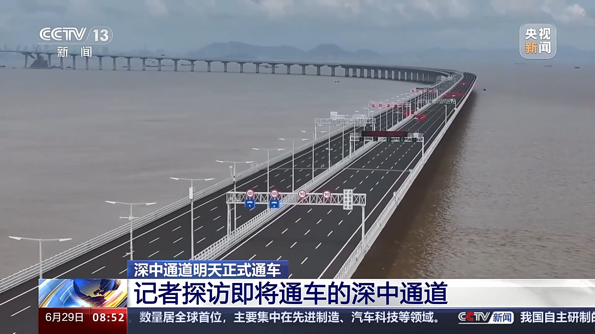 總臺記者 王思元:深中通道全長24公里,我們行駛了大概18分鐘,就已經(jīng)通過海底隧道進入了深圳。這里是重要的互聯(lián)互通的交通樞紐,我身后就是廣深沿江高速,通過我的另一側(cè),大家可以看到,從這里行駛5公里左右,就可以到達機荷高速和廣深高速了,從這個位置到達深圳寶安國際機場有2公里的距離。