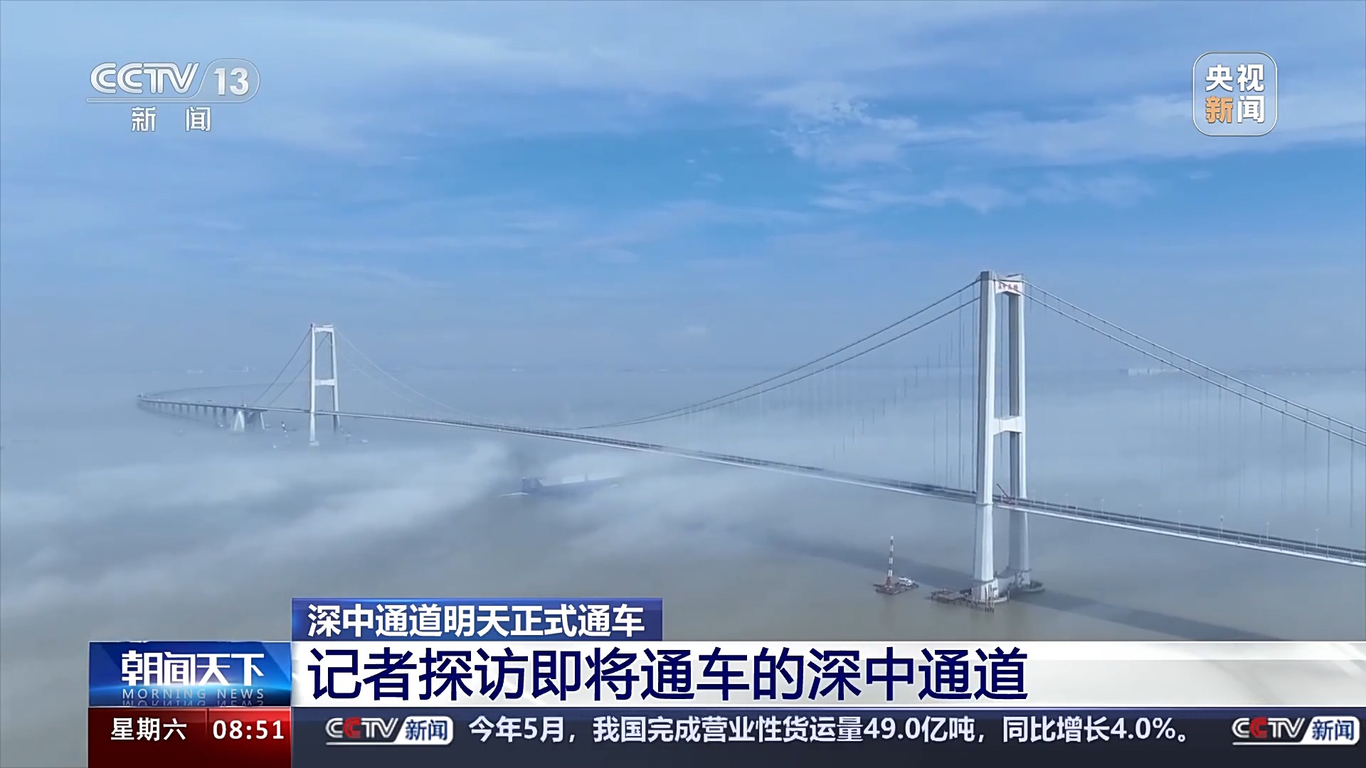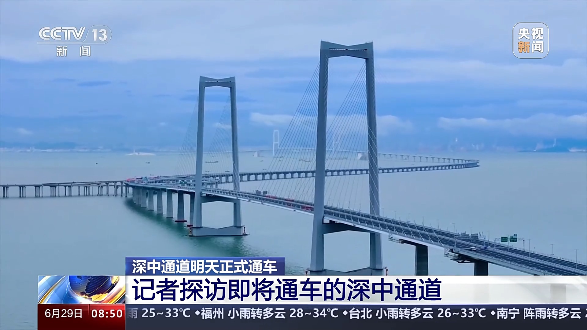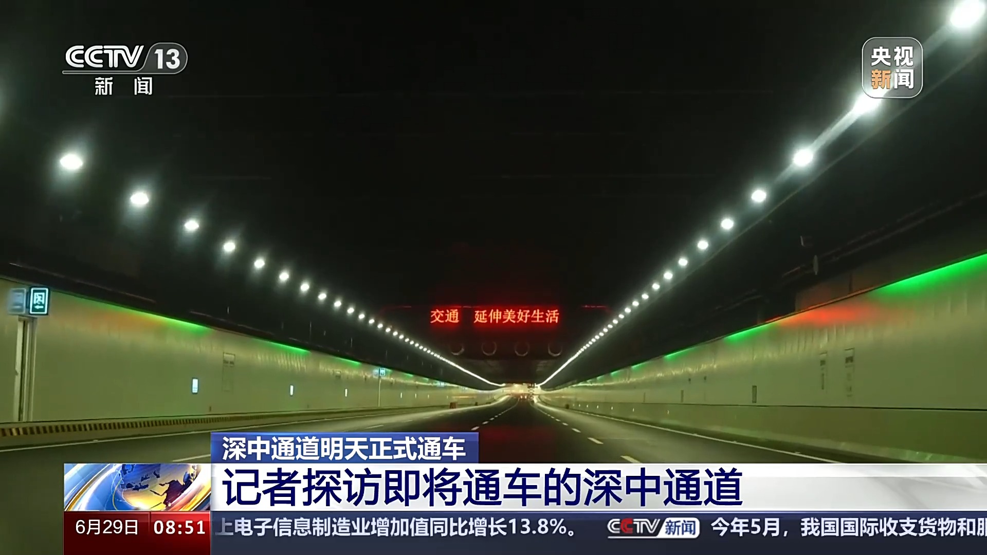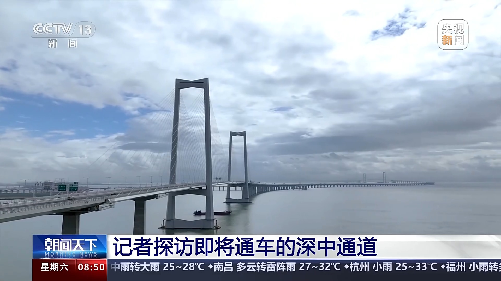總臺記者 王思元:深中通道全長24公里,我們行駛了大概18分鐘,就已經(jīng)通過海底隧道進入了深圳。這里是重要的互聯(lián)互通的交通樞紐,我身后就是廣深沿江高速,通過我的另一側(cè),大家可以看到,從這里行駛5公里左右,就可以到達機荷高速和廣深高速了,從這個位置到達深圳寶安國際機場有2公里的距離。