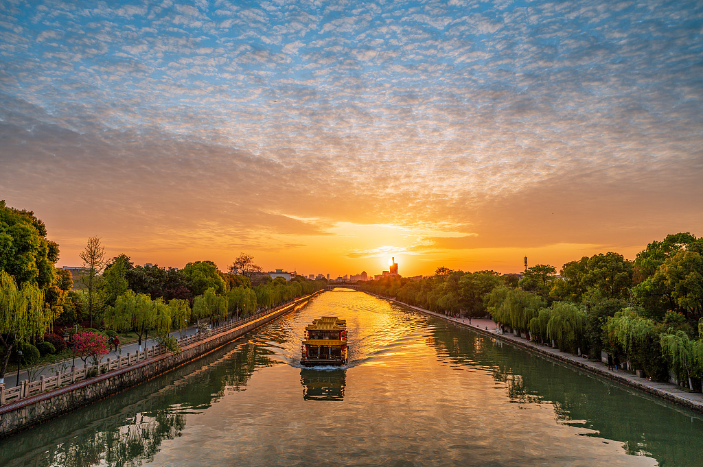 它由京杭大運(yùn)河、隋唐大運(yùn)河、浙東運(yùn)河組成,溝通起黃河、海河、淮河、長(zhǎng)江、錢塘江五大水系,織就了四通八達(dá)的水網(wǎng),造福著沿岸一代又一代的百姓。