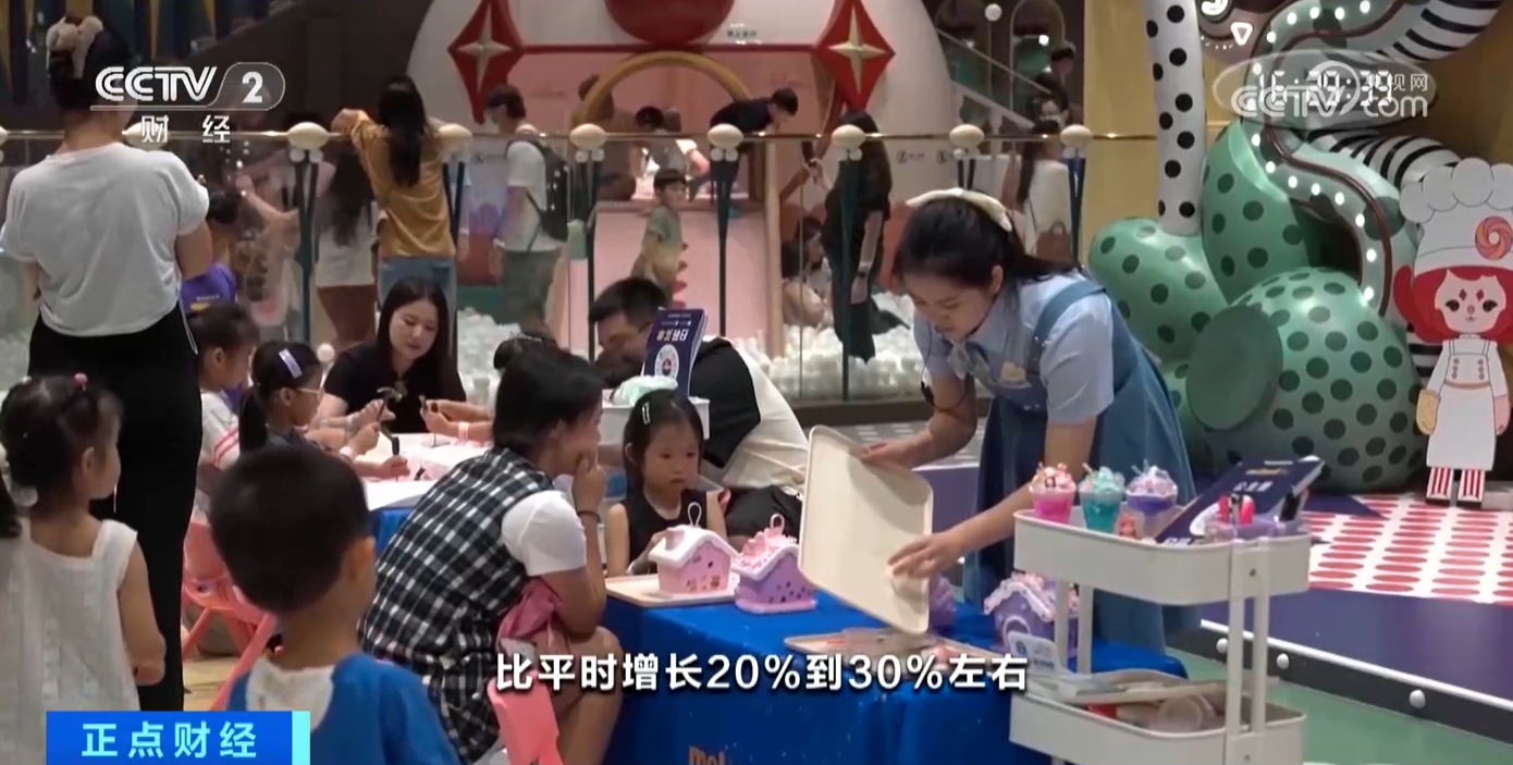 某室內(nèi)游樂場深圳一方天地店值班經(jīng)理麥麗勤介紹:“比平時增長20%至30%左右,因為孩子們放假了,家長們也有空帶孩子們過來玩?!?/p>