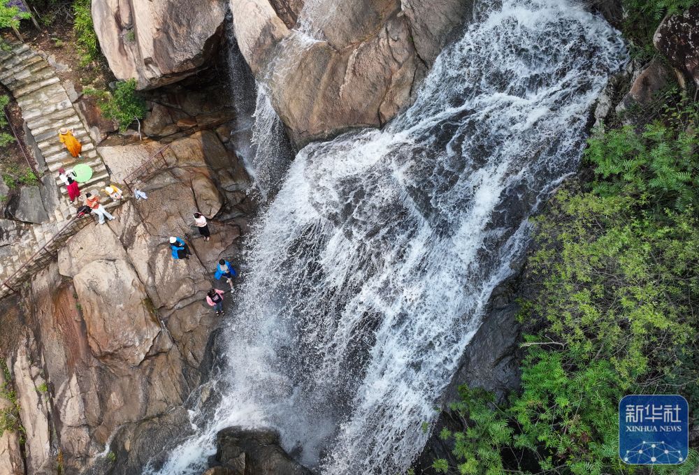 7月10日,游客在江蘇省連云港市連云區(qū)宿城街道東崖屋村游玩(無人機(jī)照片)。新華社發(fā)(王健民 攝)