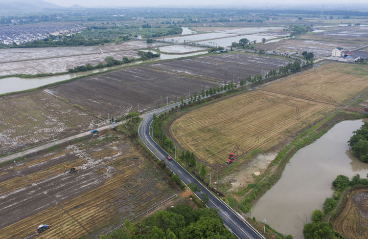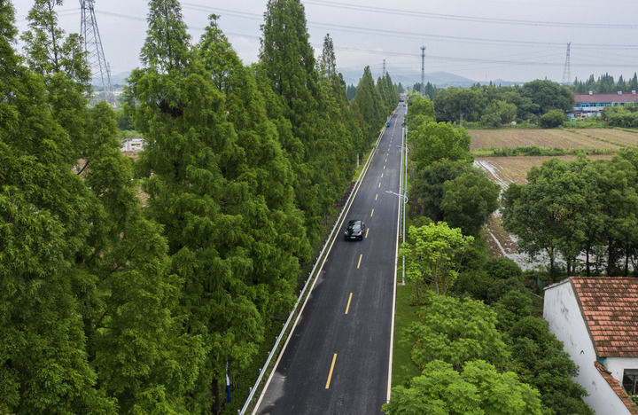 在浙江省諸暨市趙家鎮(zhèn)上京村拍攝的改造提升后的縣道(2024年6月4日攝,無人機照片)。新華社記者 徐昱 攝