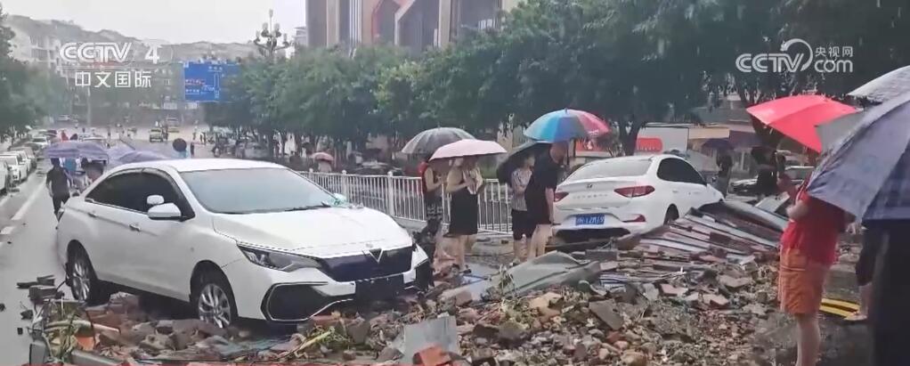 在四川,暴雨造成內江部分地區(qū)出現內澇、滑坡等險情,閬中市城區(qū)部分道路積水嚴重,臨街多處地勢低洼的商鋪進水。一小區(qū)圍墻發(fā)生垮塌,大量磚塊混合著泥沙沖走了附近停放的兩臺轎車,并沖進附近商鋪,致使道路短時間中斷。當地公安、消防、城管和社區(qū)工作人員迅速趕到現場,疏散交通,設置警戒線。同時調集作業(yè)車輛清理砂石淤泥,轉運受損車輛。目前,道路已恢復暢通。