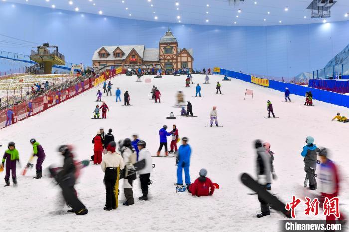 2024年1月14日,廣東省廣州市,民眾在熱雪奇跡室內滑雪場練習滑雪,感受冰雪運動的魅力。 記者 陳驥旻 攝