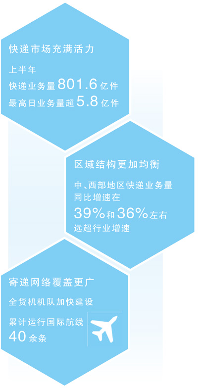“上半年,市場發(fā)展動力強勁,行業(yè)統(tǒng)籌全網(wǎng)資源,在有效滿足多樣化寄遞需求的同時,助力消費需求持續(xù)釋放?!眹亦]政局有關(guān)負(fù)責(zé)人表示。